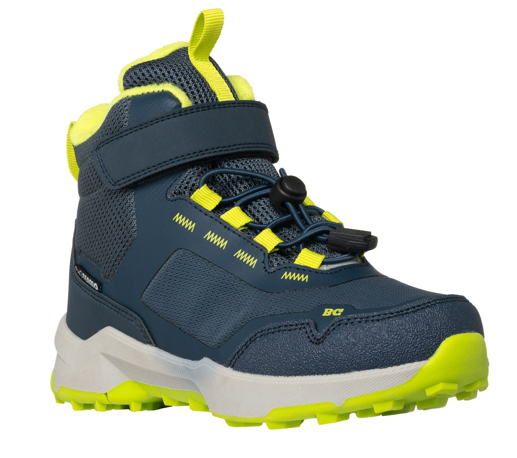 Зимние ботинки термо для мальчика. Для удобства обуви в качестве застежки в ботинках используются липучка и затягивающая шнуровка. Рекомендовано при температуре: +5 до -25 В обуви присутствуют светоотражающие элементы, основная функция которых – защита в темное время суток. Termo обувь – это обувь, которая выпускается с применением различных высокотехнологичных материалов и технологий. При ее изготовлении применяются различные мембранные ткани, обеспечивающие термо эффект и водонепроницаемость. Внутри используется современный утеплитель с добавлением овечьей шерсти. Изготовленные по технологии Waterstop препятствуют проникновению влаги. Ткань BG-QueenTEX, входящая в состав обуви BG Termo. Благодаря способности мембранных тканей сохранять тепло, в термо обуви не применяется толстый утеплитель (мех). Кроме того, такая обувь проста в уходе: ее достаточно сполоснуть сверху. Под мембрану не одевают: шерстяные, хлопчатобумажные носки или колготки, необходима ткань только с содержанием синтетики (мин 15%). - Дополнительная информация