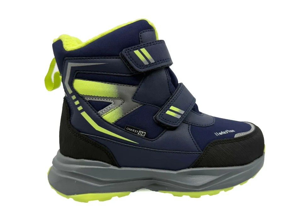 Зимові термо черевики для хлопчика. Для зручності взування як застібка в черевиках використовуються дві надійні липучки. Рекомендовано при температурі: +5 до -25 У взутті присутні світловідбиваючі елементи, основна функція яких захист в темний час доби. Termo взуття - це взуття яка випускається із застосуванням різних високотехнологічних матеріалів і технологій. При її виготовленні застосовуються різні мембранні тканини, які забезпечують термоефект і водонепроникність. Всередині використовується сучасний утеплювач з додаванням овечої вовни. Виготовлені за технологією Waterstop, перешкоджають проникненню вологи. Тканина BG-QueenTEX, яка входить до складу взуття BG Termo. Завдяки здатності мембранних тканин зберігати тепло, в термовзуття не застосовується товстий утеплювач (хутро). Крім того, таке взуття проста в догляді: її досить сполоснути зверху. Під мембрану не вдягають: вовняні, бавовняні шкарпетки або колготки, необхідна тканина тільки з вмістом синтетики(мін 15%). - Additional Information