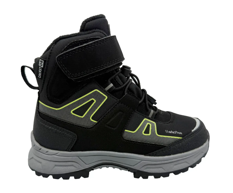 Зимові черевики термо для хлопчика. Для зручності взування як застібки в черевиках використовуються липучка та шнурівка. Рекомендовано при температурі: +5 до -25 У взутті присутні світловідбиваючі елементи, основна функція яких захист в темний час доби. Termo взуття - це взуття яка випускається із застосуванням різних високотехнологічних матеріалів і технологій. При її виготовленні застосовуються різні мембранні тканини, які забезпечують термоефект і водонепроникність. Всередині використовується сучасний утеплювач з додаванням овечої вовни. Виготовлені за технологією Waterstop, перешкоджають проникненню вологи. Тканина BG-QueenTEX, яка входить до складу взуття BG Termo. Завдяки здатності мембранних тканин зберігати тепло, в термовзуття не застосовується товстий утеплювач (хутро). Крім того, таке взуття проста в догляді: її досить сполоснути зверху. Під мембрану не вдягають: вовняні, бавовняні шкарпетки або колготки, необхідна тканина тільки з вмістом синтетики(мін 15%). - Additional Information
